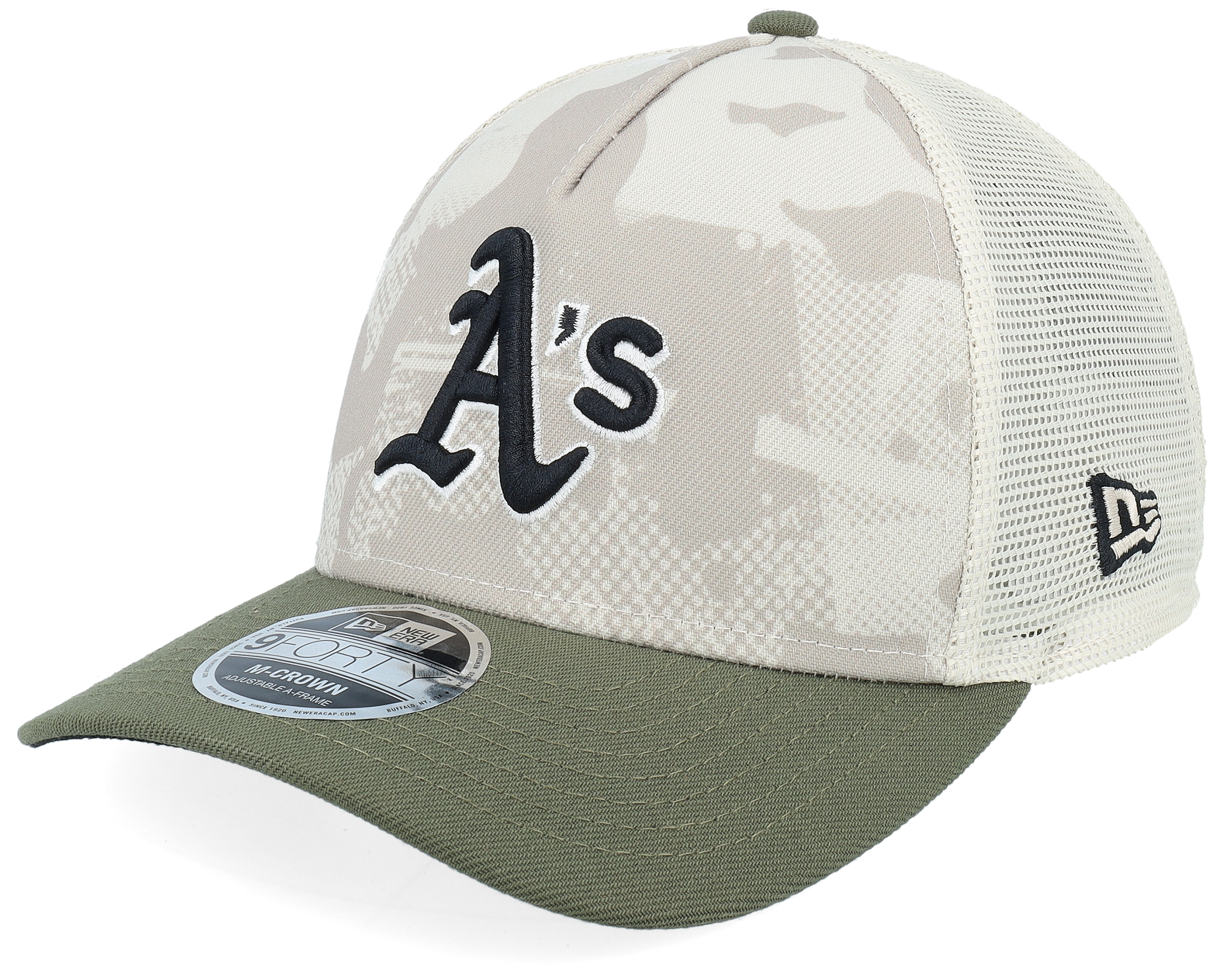 Oakland Athletics MLB Armed Forces Day 9FORTY Mc Stone/Olive A-frame Trucker